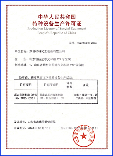 松嶺化工專(zhuān)注化工設(shè)備行業(yè)15年,集科研、開(kāi)發(fā)、設(shè)計(jì)、 生產(chǎn)于一體的高新技術(shù)企業(yè),還具備設(shè)計(jì)、制造D1、D2類(lèi)壓力容器資質(zhì)。質(zhì)量保障